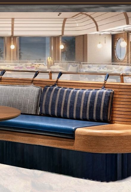 change the upholstery color on the banquette from blue to red keep the texture of the fabric as it was before do not make it velvet