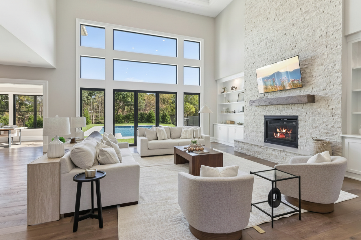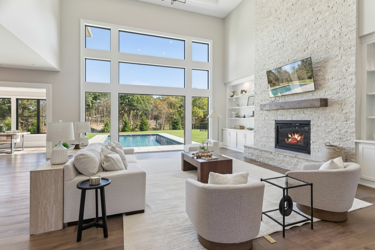 make it look like theres a pool in the backyard dont change anything about the windows or the furniture
