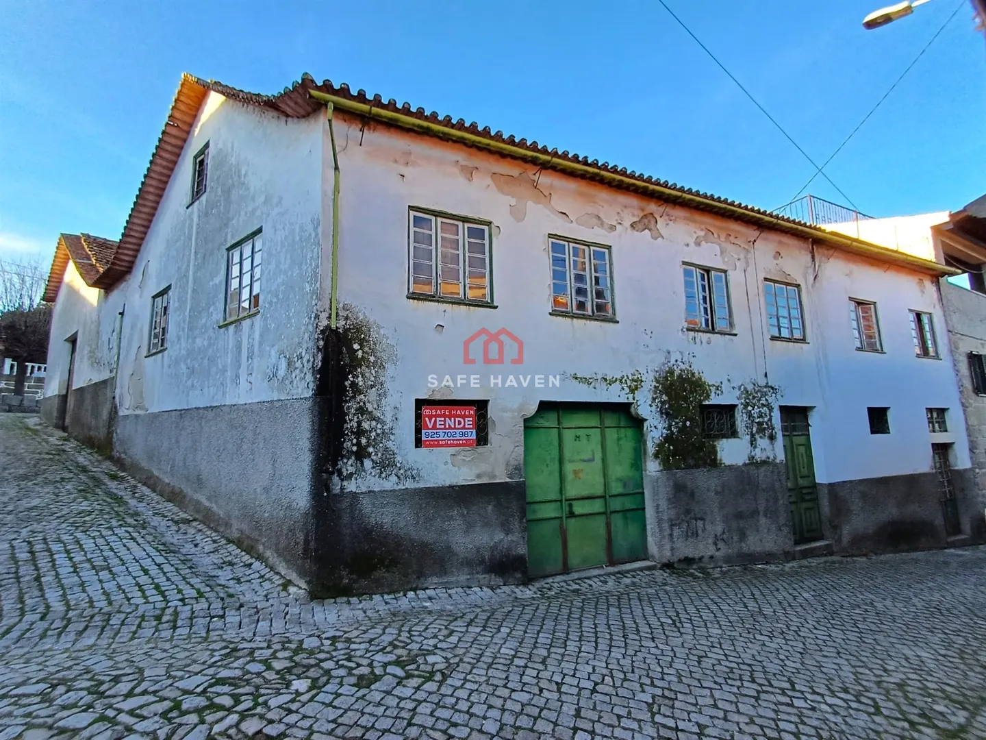 a two story portuguese village house with a fully renovated facade the structure keeps its original charm and proportions sloped red tiled roof classic rectangular windows and cobblestone street surroundings but now the exterior looks newly restored the walls are freshly painted in soft white with smooth plaster free of cracks or stains the wooden window frames and doors are newly painted in elegant olive green with clean glass panes the base of the house features a subtle stone texture for contrast add modern yet discreet lighting fixtures and improved roof finishing with neat tiles and gutters render this scene in warm late afternoon light highlighting the clean surfaces and textures the ambiance should feel welcoming combining the rustic character of the village with the elegance of a careful renovation