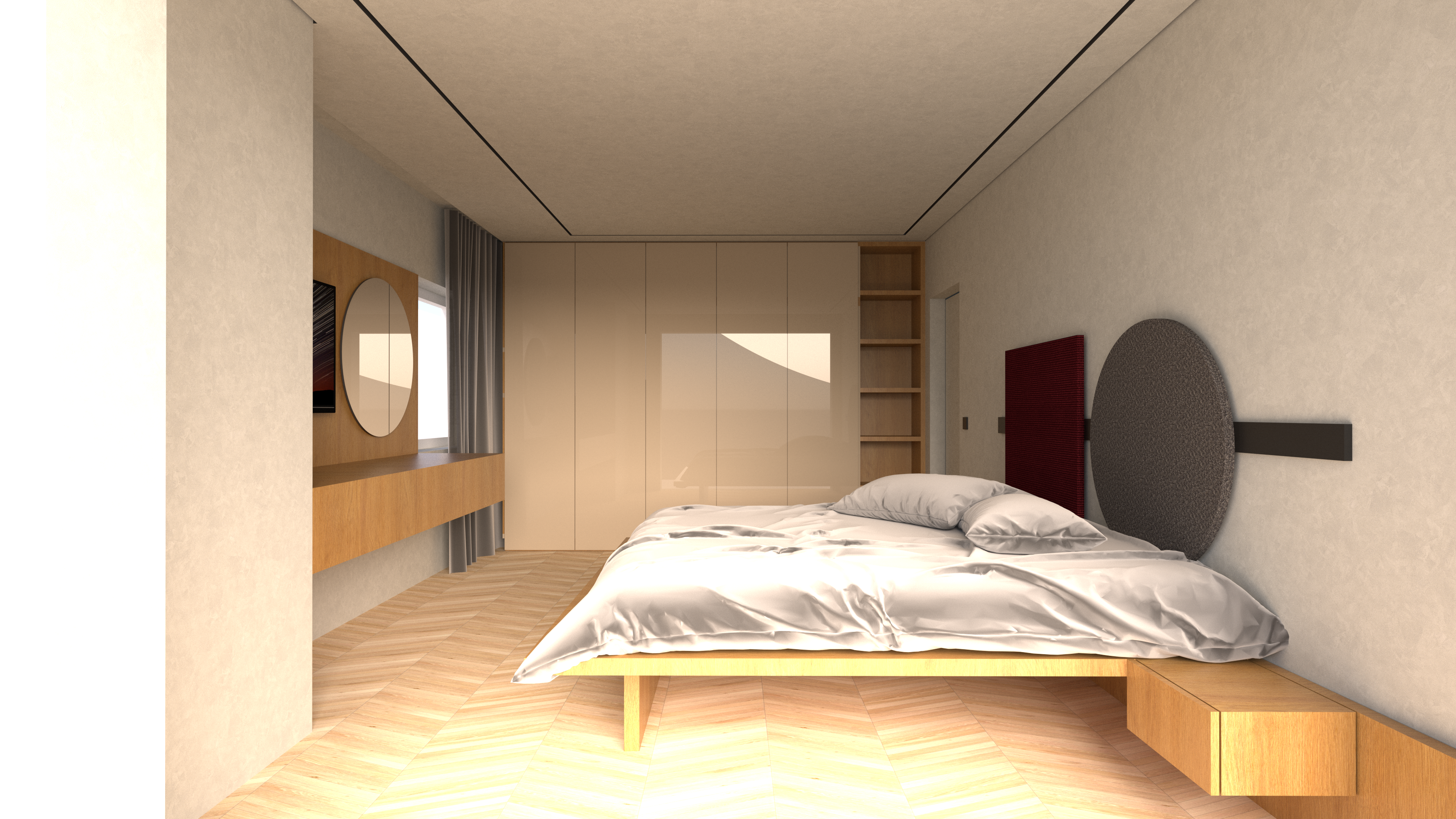 hyperreakustick image minimalist scandivanian style floor from white oak hardwood chevron parquet walls and ceiling from limewash bed and table on the left from natural oak veneer