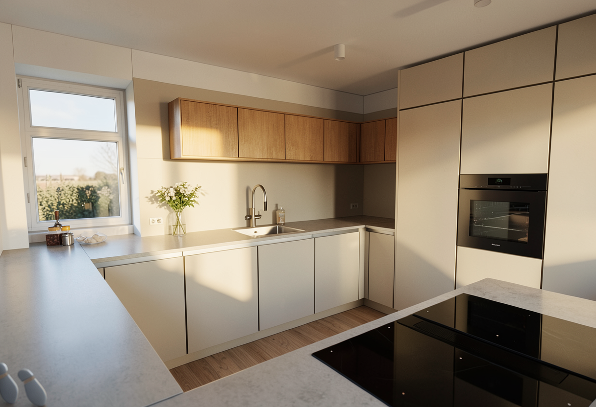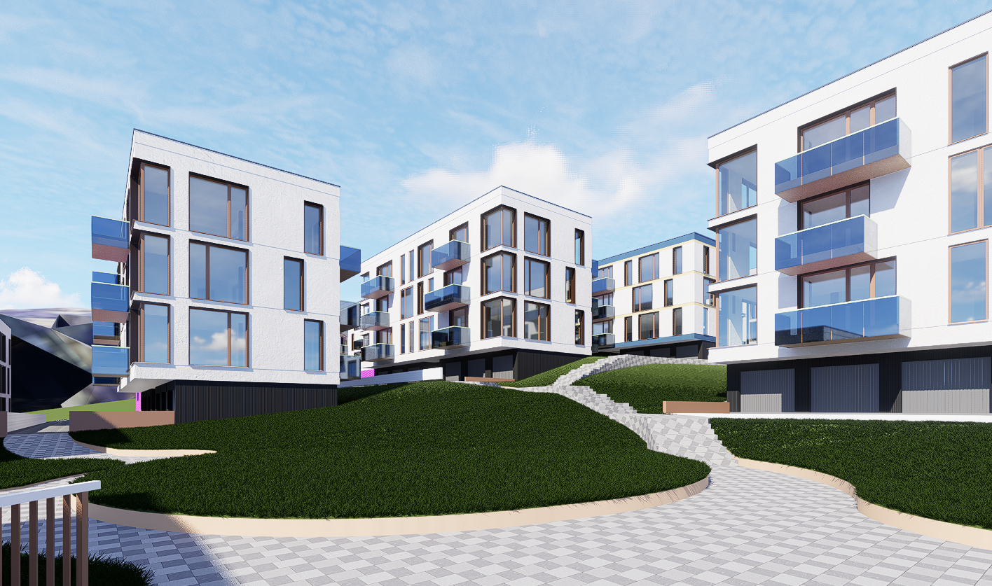 generate ultra realistic 8k pbr textures for a modern residential building facade white painted brick with clearly defined mortar joints slightly recessed light grey subtle surface roughness micro cracks light weathering natural tonal variation no flat surfaces strong normal and displacement detail glass architectural glass semi transparent realistic environment reflections sky landscape buildings while keeping interior visibility correct ior 1 52 slight natural imperfections clean but not perfect grass lawn type grass with natural green variation no oversaturation uneven blade length minor patchiness subtle soil hints fine close up detail soft subsurface scattering window frames ral 050 60 20 karamellbraun powder coated aluminum matte satin finish subtle micro texture realistic light response ground semi worn grey asphalt visible fine aggregate light cracks faint tire wear tonal variation realistic roughness and normal detail global settings 4k resolution full pbr set albedo roughness normal displacement ao physically accurate light response real world scale natural color grading cinematic photorealism do not change the shapes do not change the volumes do not add nature or urban elements in the background make the sky blue with light clouds
