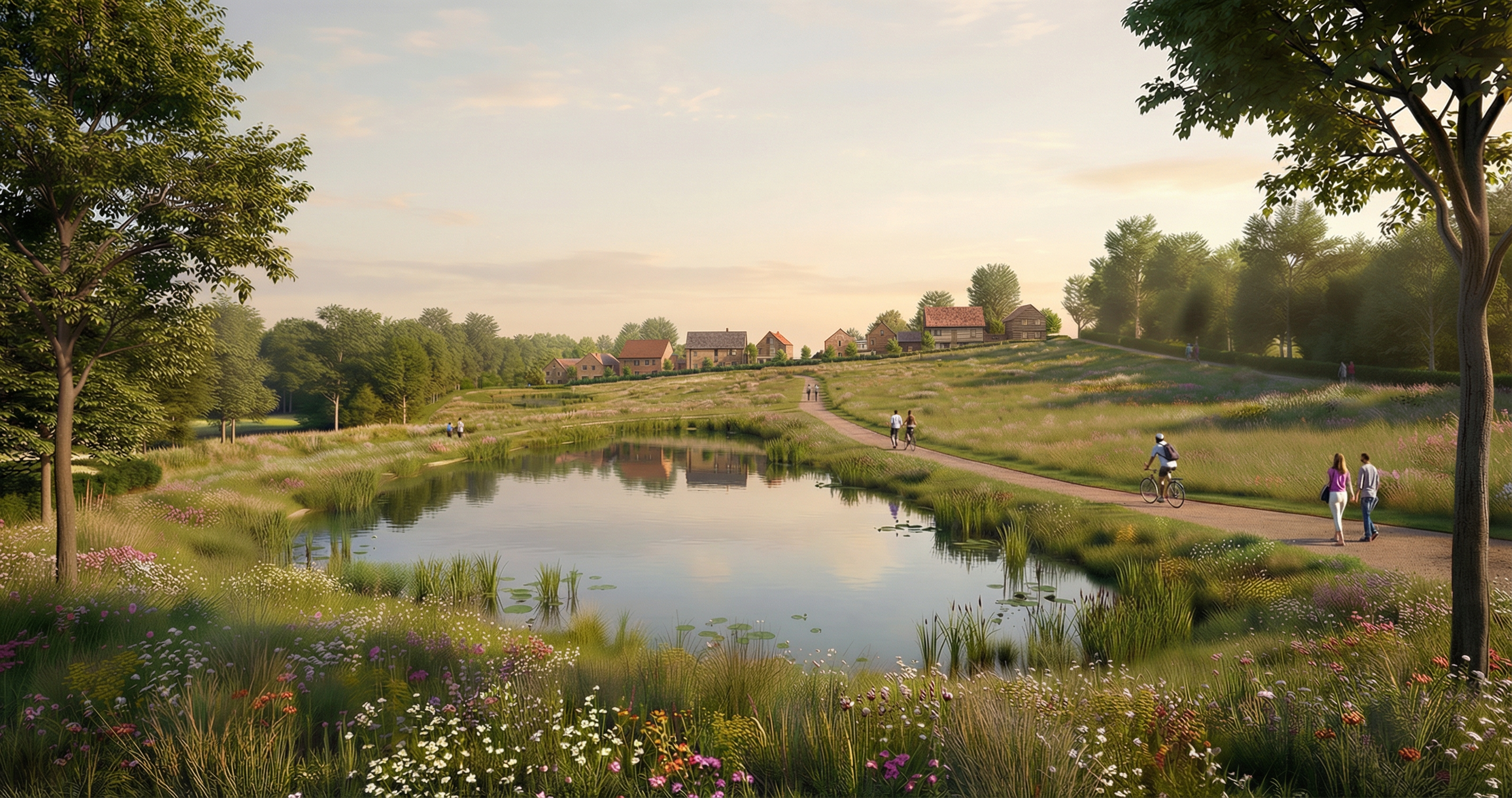 important do not change or modify the base geometry in any way overall style scandinavian realistic and calm neutral tones natural materials matte finishes soft lighting residential architectural photography mood exterior ground and landscape exterior paving light gray small format cobblestones with subtle texture and natural variation dry garden areas with ornamental grasses simple and natural composition add a small jacaranda tree integrated casually within the dry garden foreground left side the existing block should be rendered as a cast in place concrete barbecue bbq solid and minimal exposed concrete finish architecture and materials ground floor walls white brick masonry matte finish visible brick texture interior visible through windows ground floor flooring polished concrete light gray tone with visible polished stone aggregate and vitrified finish from the stair steps upward wood flooring visible interior furniture made of dark wood ebony tone scandinavian style structural element a visible black metal c beam between the upper and lower volumes matte black finish open side facing outward upper volume side fa ades white small format ceramic cladding clean layout with subtle joints upper volume front fa ade white finish with white metal framing a continuous metal planter running across the full width below the window natural plants growing organically from the planter not too dense lighting and context interior lighting soft warm artificial light coming from the windows subtle and indirect background behind the boundary wall include neighboring house rooftops and trees to provide realistic urban context lighting conditions soft daylight combined with warm interior glow no harsh shadows camera eye level architectural perspective natural and balanced framing