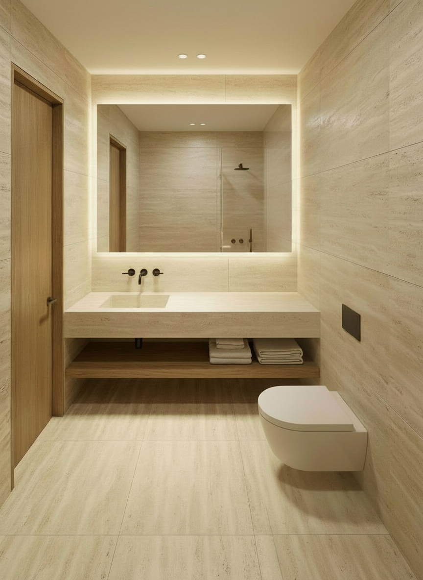 change wall and floor material to be microcement in cream sand color