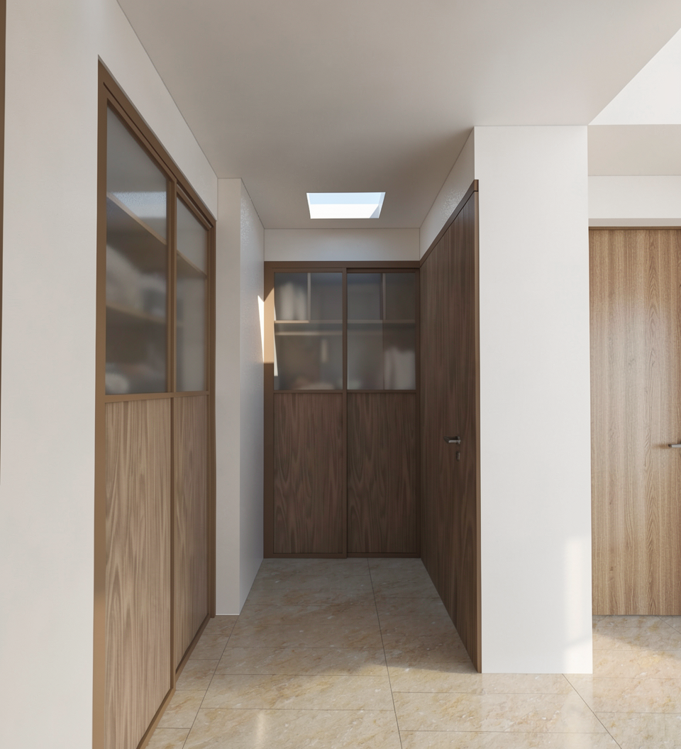 can you add a mirror on the white wall on the left between the closets