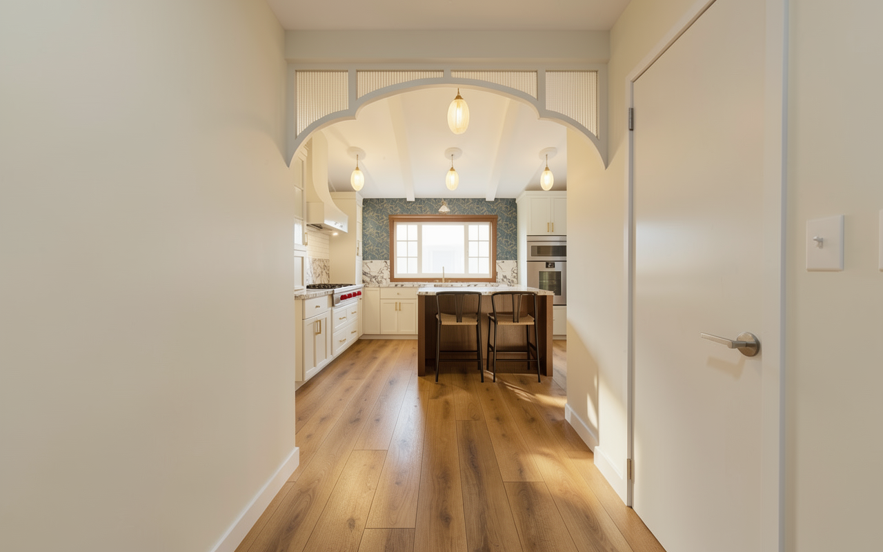 create a realistic elevation of the architectural design maintaining the original materials of lap siding in their correct locations enhance the lighting and shadows for a lifelike effect but ensure that the texture and arrangement of both siding types remain exactly as in the original design make sure to keep the rock on the walls the same this in montana use native montana trees and vegetation make wood siding ghost wood like jackson hole but leave the rock siding dont change the rock siding just make it more realistic make golden hour outside show golden light coming from inside make roof copper standing seam roof make rock on concrete on foundation the absolute most important thing is do not change the shape of the structure or window or door sizes the most important thing is to not change the size of the house in anyway keep rock on walls only trees far off in distance make small mountain far off in distance to the left the background is and open field with montana trees far off in distance the hill on the right slopes up slightly and to the left drops off add rock to foundation walls also dont change corbels or timbers again the most important thing is to not change the building shape windows or doors keep the same shape dont change lines in windows or doors