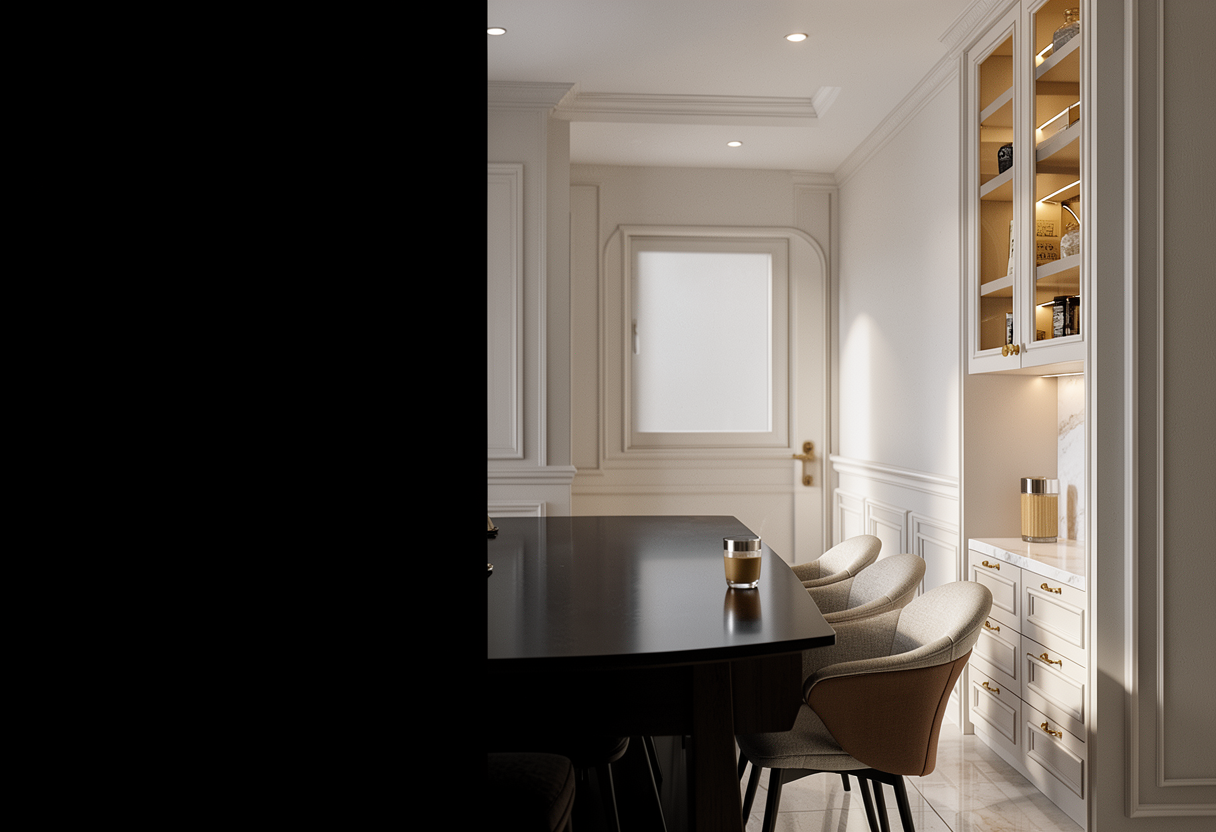 ponme otra lavadora en el hueco que no hay mueble debajo de la encimera pon luz natural en la habitacion pon todo los muebles con tono mas claritoen todos los mueblse tirando a blanco pon la iluminacion un poco mas de tarde quita la decoracion vegetal pon toda la habitacion con el mismo papel pon iluminacion natural de tarde pon luz blanca pon luz mas fria pon todo los muebles beige suave pon otra lavadora de acero al lado del mueble del fregadero