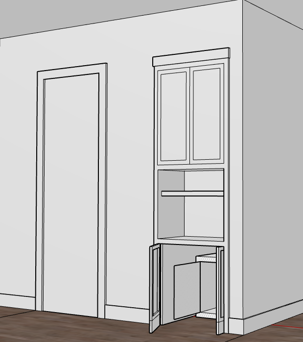make this look like a real cabinet setup with a dog crate at the bottom