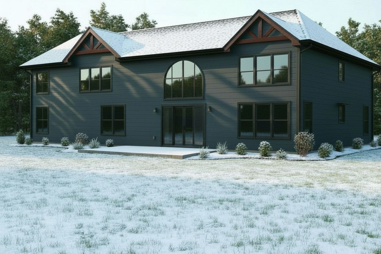 dark blue siding more of a brown wood accent not red