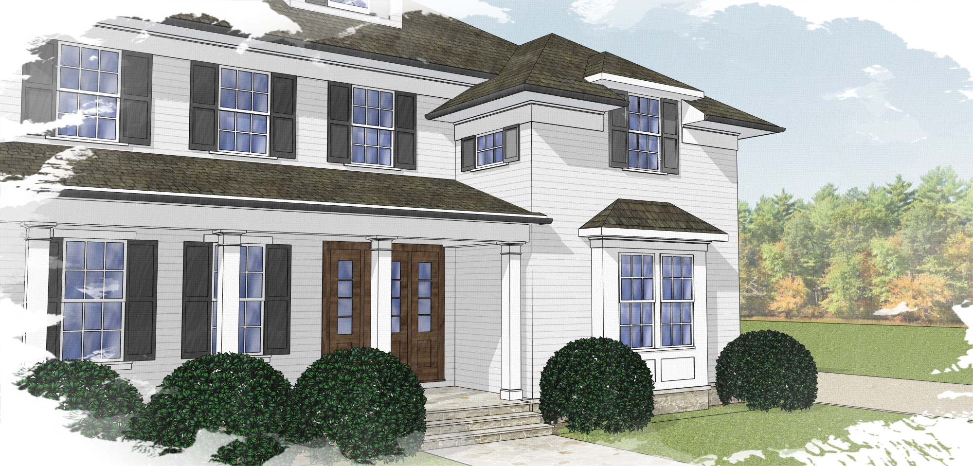 realistic white siding with full green landscaping