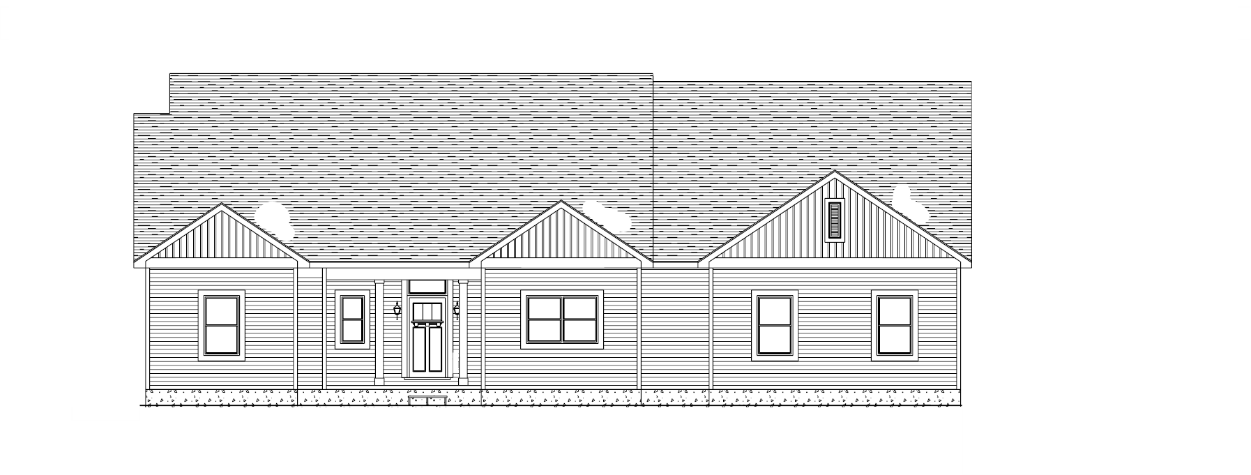 make as photorealistic as possible while keeping textures and architecture the same as selection add robust professional landscaping ona thinly wooded scene with good lighting in ravenna ohio match materials to plan and remove any texts and tringle shapes on roof colors selections are as follows board and batten siding color to be nightfall 505557 horizontal siding color to be nightfall 505557 corner boards to be nightfall 505557 entry door with glass panel with grids recessed panels and shelf as shown to be painted white fafafa entry door will have an schlage plymouth satin nickel door knob with deadbolt above the windows window trim fascia and soffit to be white fafafa the porch posts are to be painted white fafafa and shingles to be certainted landmark dimensional multi layered shingles color black