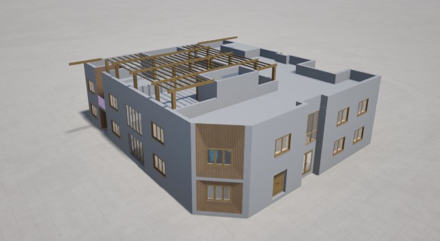 make realistic suggestions with polish concrete wood cladding with segments of the biophilic geometric green walls and greenery on terracew with solar panels of the modern guyana architecture