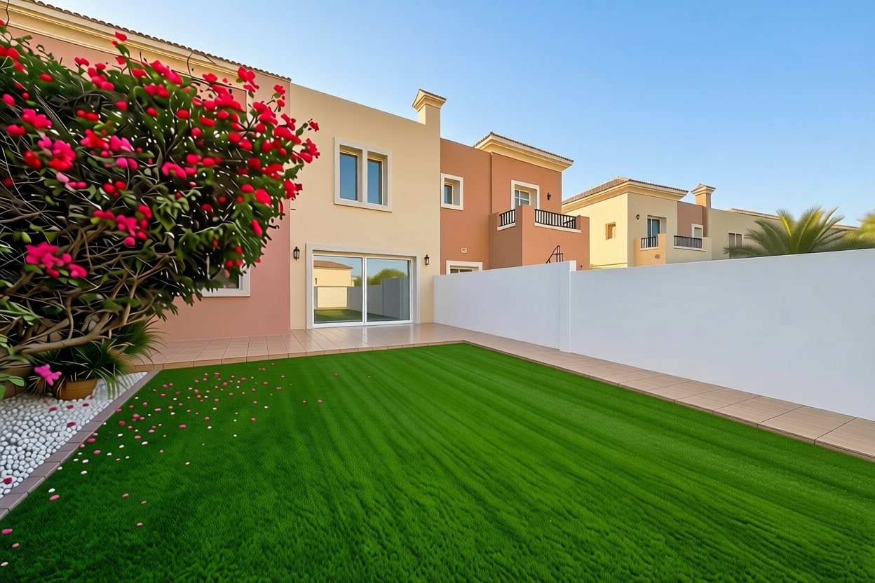 a cozy minimalist house with a sloped black metal roof dark grey shou sugi ban vertical wood slat walls and large clear windows with black frames surround it with a serene lush green landscape bathed in the warm glow of a late afternoon sun add soft shadows and a clear blue sky to create a peaceful and inviting atmosphere add some outdoor furniture on the concrete patio under roof