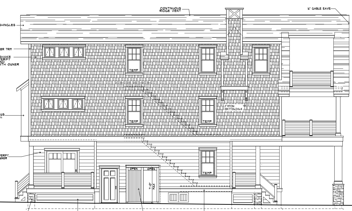 render this house elevation as a realistic 3d view siding light gray mist very light gray tone similar to james hardie light mist roof very dark gray or black shingles trim white windows white frames keep proportions window sizes and placements exactly as shown in the drawing