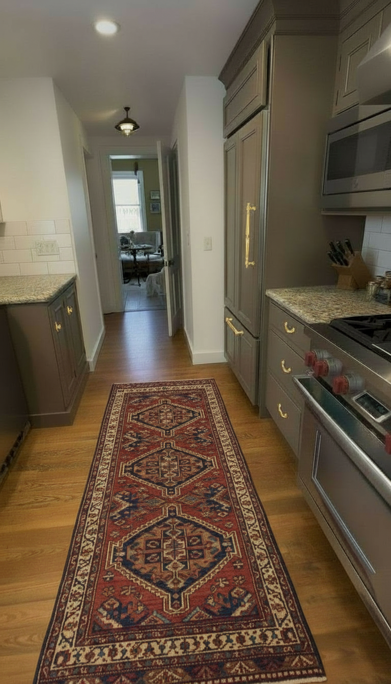 add an tibet runner down the center of the kitchen