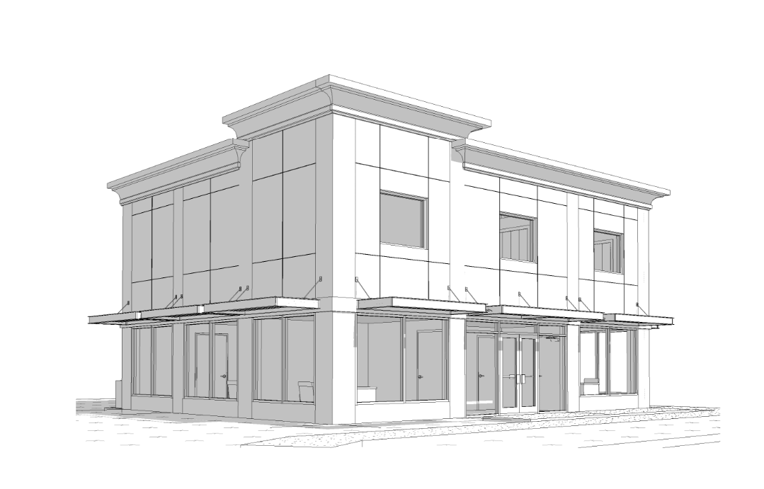 modern exterior shot a modern two story building with clean elegant lines and minimalist design the walls are painted in a soft cream color providing a warm and inviting atmosphere large windows are framed in brushed silver reflecting the surrounding cityscape the roof and awnings are in a deep charcoal gray adding a sophisticated contrast the ground is paved with modern light gray stones set against a clear blue sky with soft sunlight casting gentle shadows creating a serene and contemporary urban scene architecture