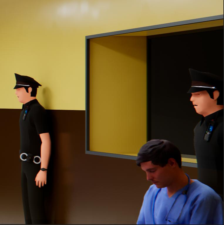 change the body position of the seated people a little and place them as prisoners in jail