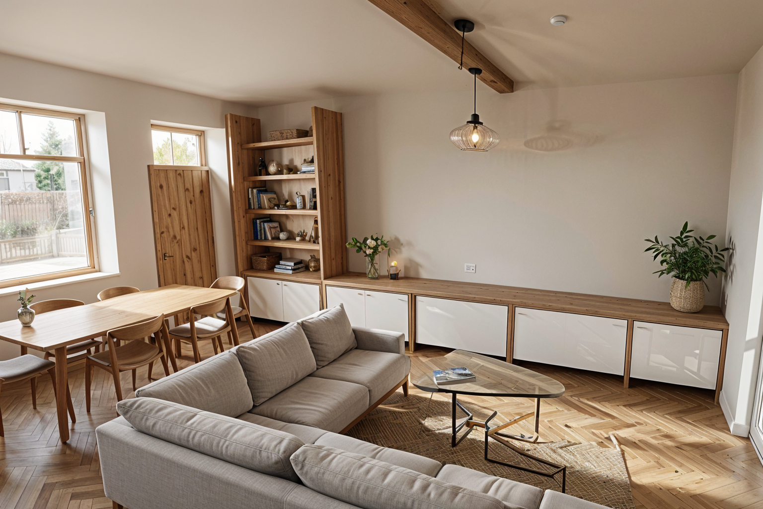 three black rounded shapes in the middle on the ground in black carpet texture the rest of the floor stays wood