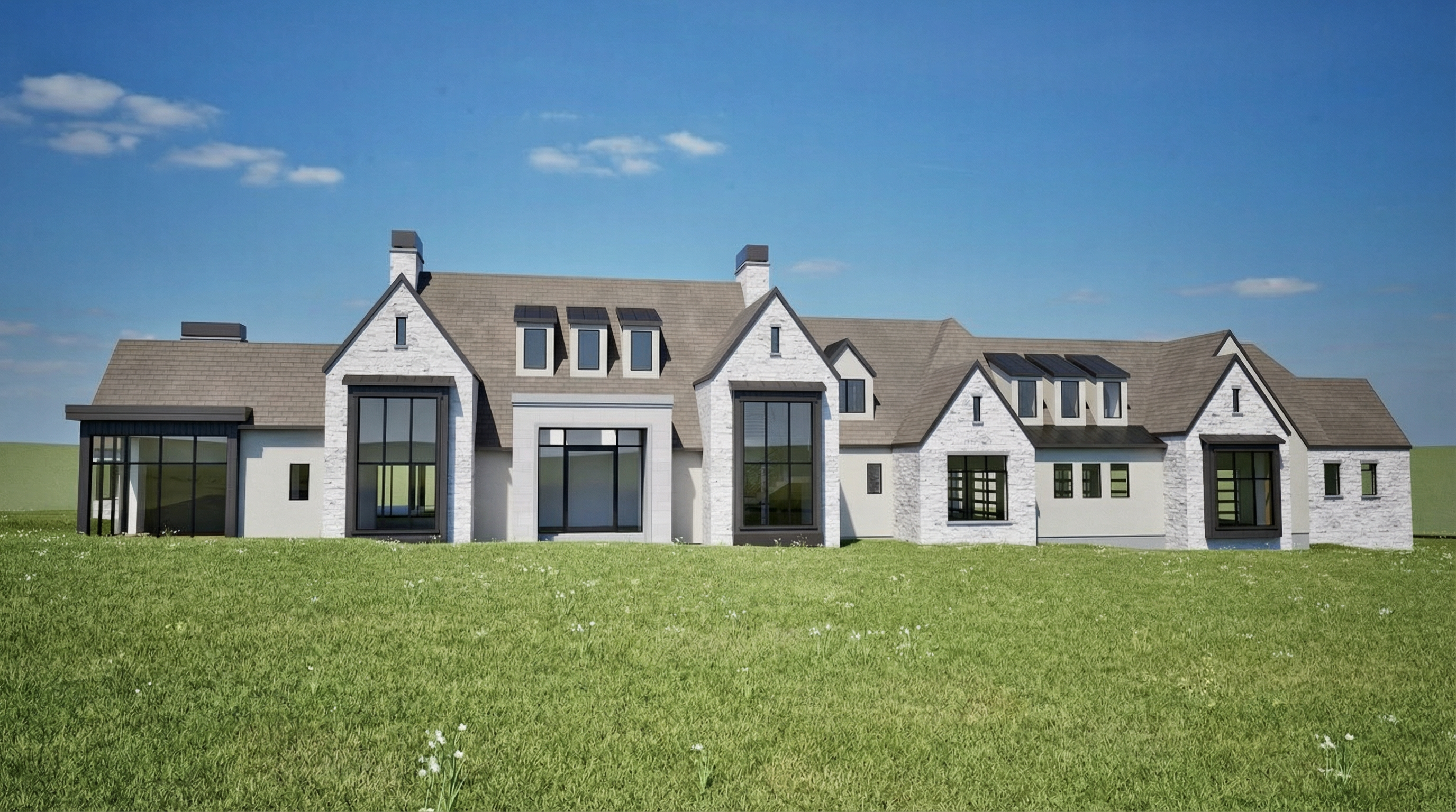 a manicured lawn layered flower beds low maintenance shrubs native plants stone pathway leading to the entrance