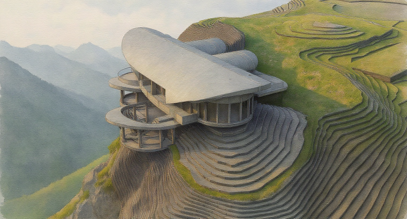 cute pastel axonometric rendering of attached house orthographic isometric view minimal city block context with simplified neighbouring buildings london vibe light sidewalks a few tiny trees and cars soft pastel palette warm beige blush pink light terracotta off white with gentle shadows and smooth gradients clean minimal linework no harsh contrast house expressed as simple volumes with subtle presented openings and terraces if any on model slightly stylised but still architectural background in a very light gradient almost white so the house stands out high quality calm elegant clay model feeling similar to an architectural competition axonometry
