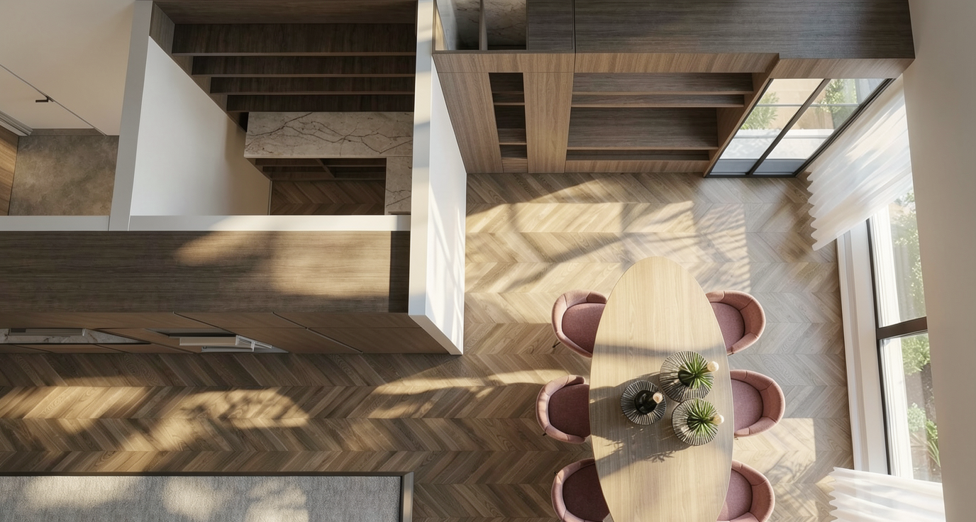 exterior shot to add table and chairs like the reference image do not touch the building facade