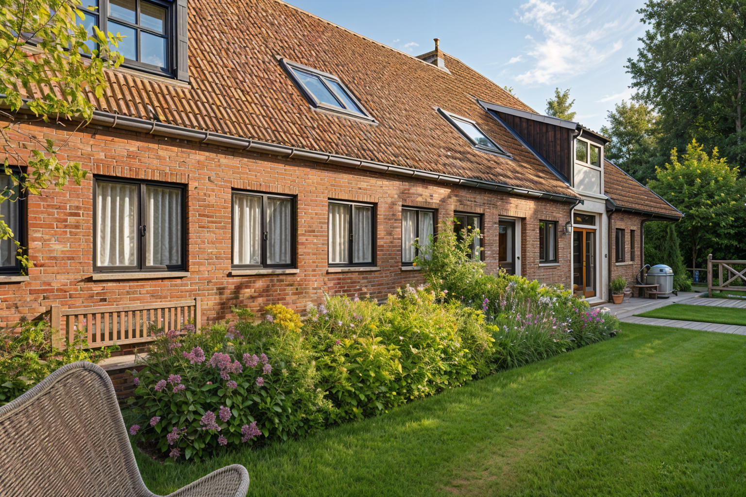 in this hall add a black aluminum glass wall on the rear wall spanning the width and height divided into four sections apply clay plaster to the walls and ceiling and apply the bologna microcement of solo gietvloeren on th efloor replace the visible windows with black aluminium windows featuring muntin divisions
