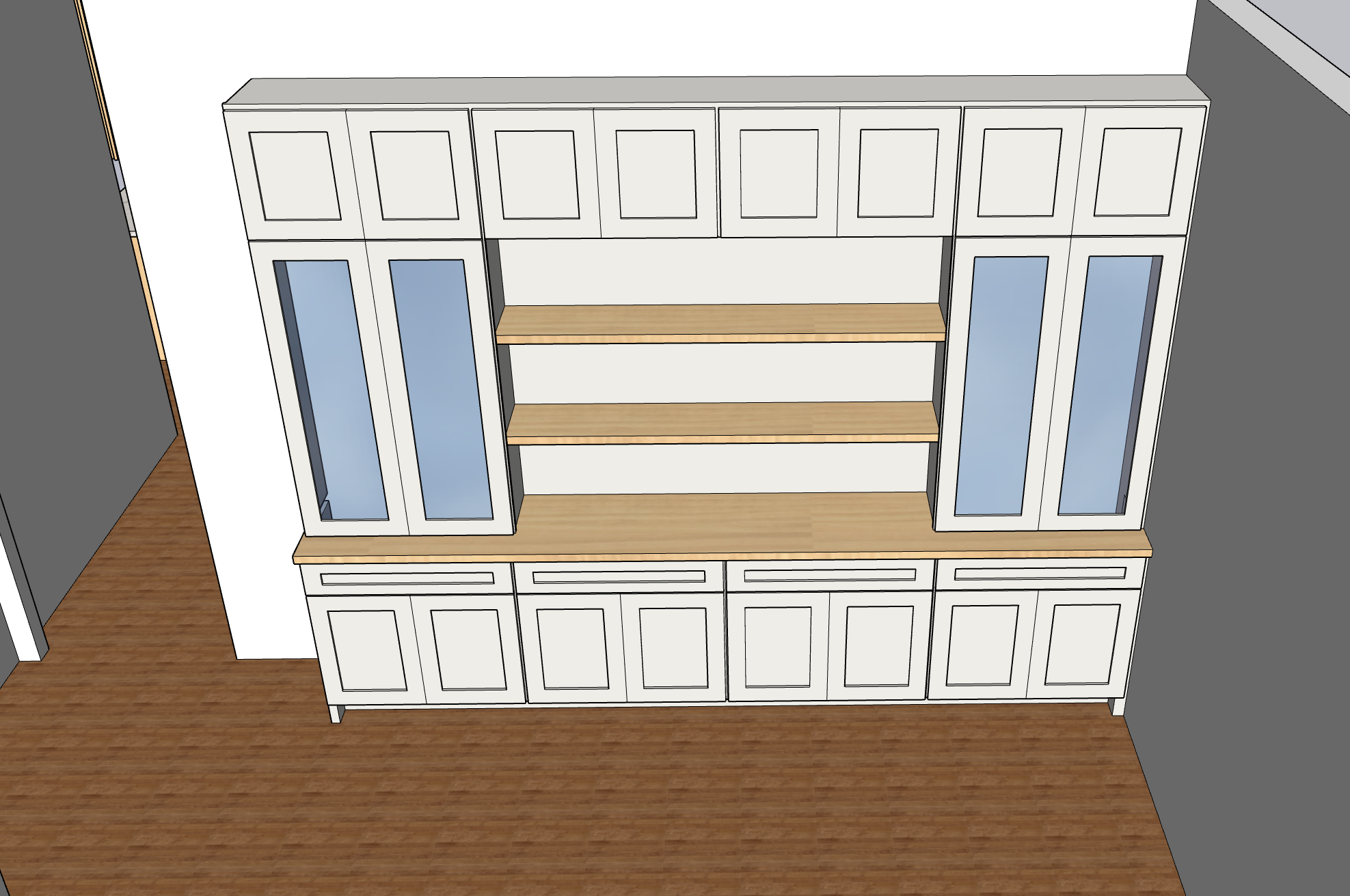 add overhead lighting in ceiling make cabinets painted remove door and drawer pulls