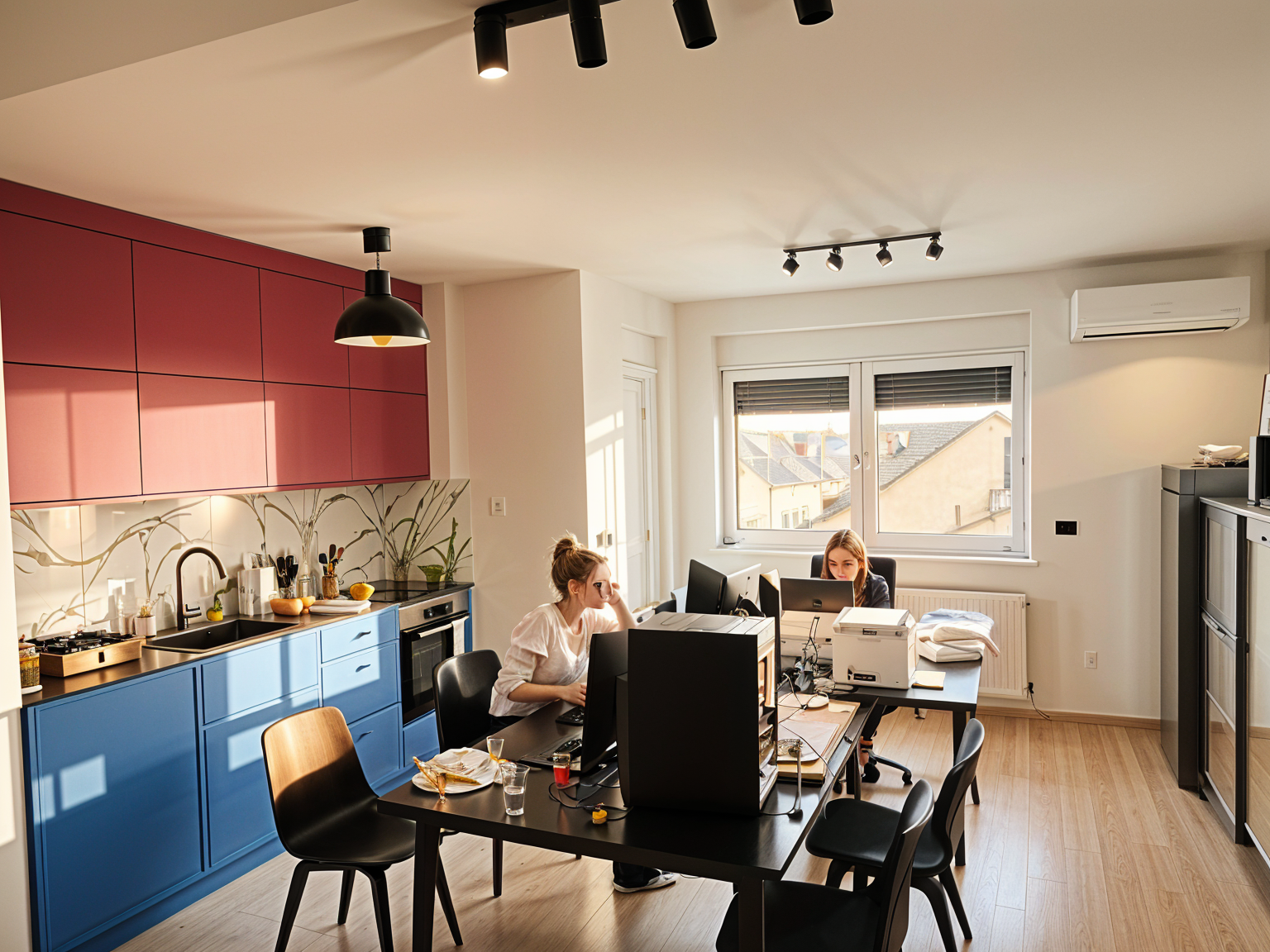 this house needs to be clean and facade is light beige color with red brick roof windows and doors are new there is glass rail and remove furniture in the picture