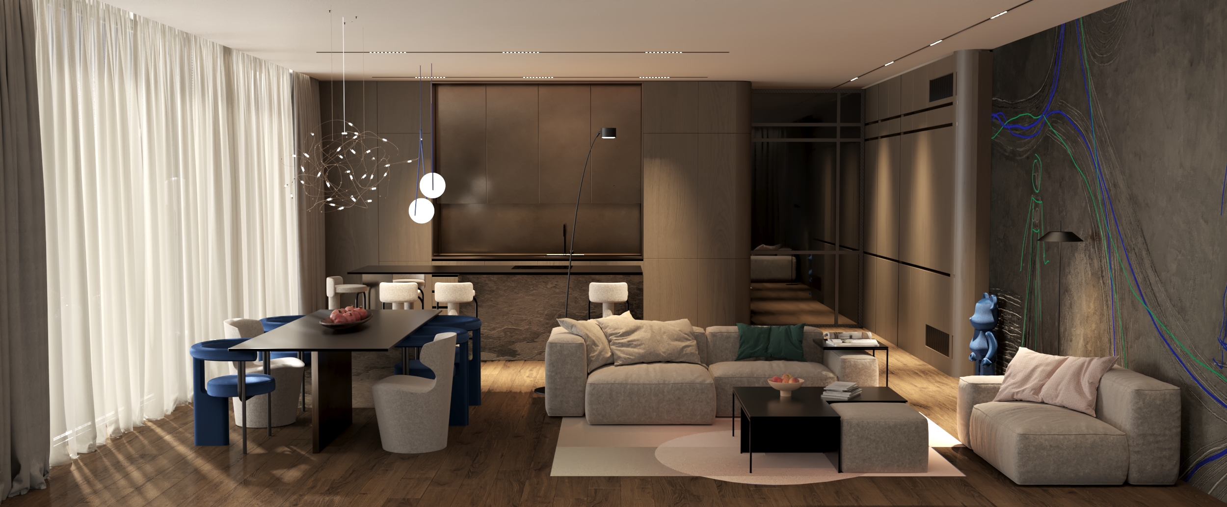 modernist interior shot make this interior in the style of japandi architecture