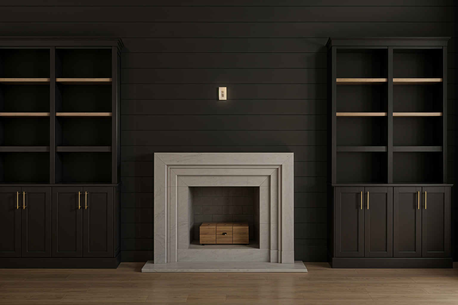 do not change the cabinets in any way preserve the exact cabinet colors materials finishes dimensions door and drawer styles hardware spacing alignment and all geometry exactly as shown do not alter the countertop shape backsplash appliances flooring lighting fixtures or wall structure only remove the construction materials clutter and mess from the scene clean the room and make it look finished and staged add a few simple tasteful home accessories appropriate for the style of the space but do not add or remove any furniture windows or architectural elements maintain the original lighting direction and realism enhance clarity and polish the photo while keeping the cabinetry and room design completely unchanged do not alter the lighting to keep the cabinet colors as they are in the image add new flooring and countertop add a speed oven to fit the entire opening of the full height cabinet stage the floating shelves and countertop for a beautiful luxury country kitchen