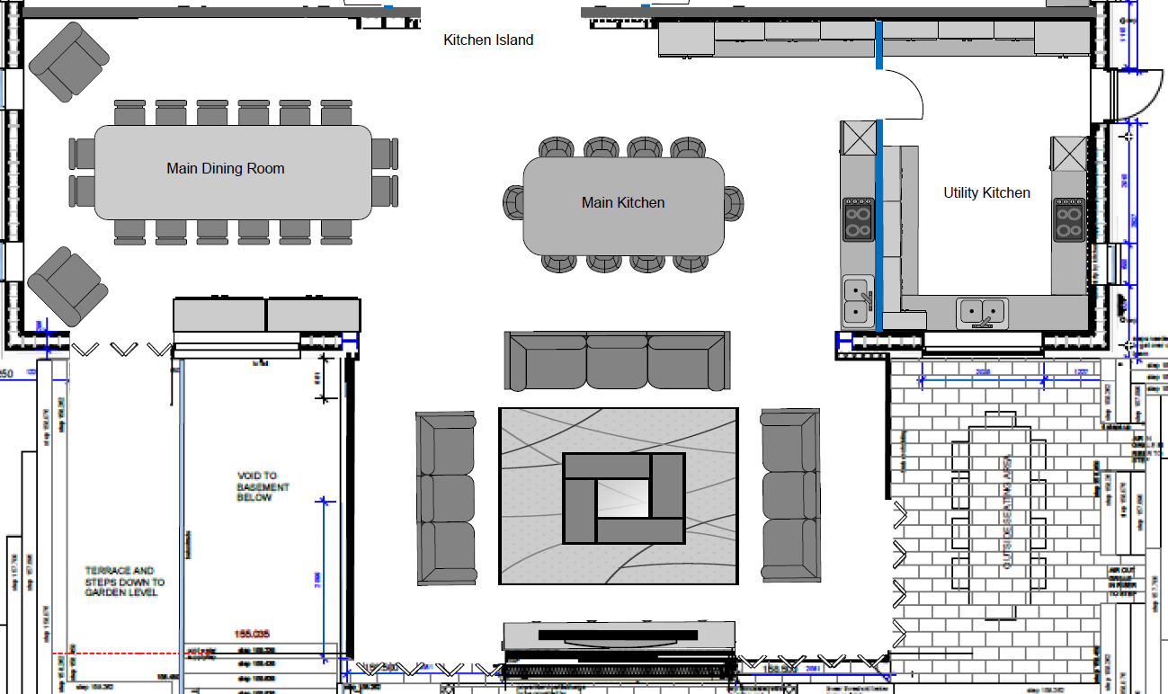 create a modern and classy vibe for the kitchens utility dining room and living room make 4 seperate images per room