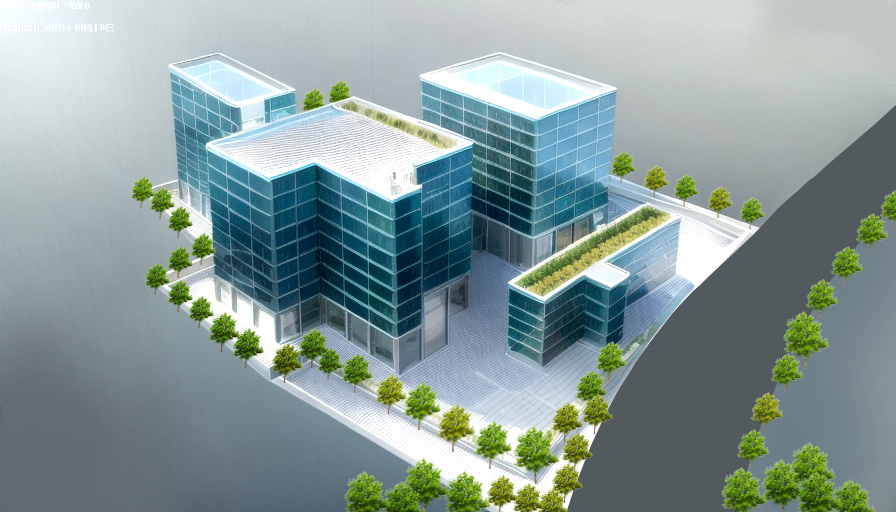 postmodern exterior shot photorealistic rendering add human figures cars add details to the facade architecture