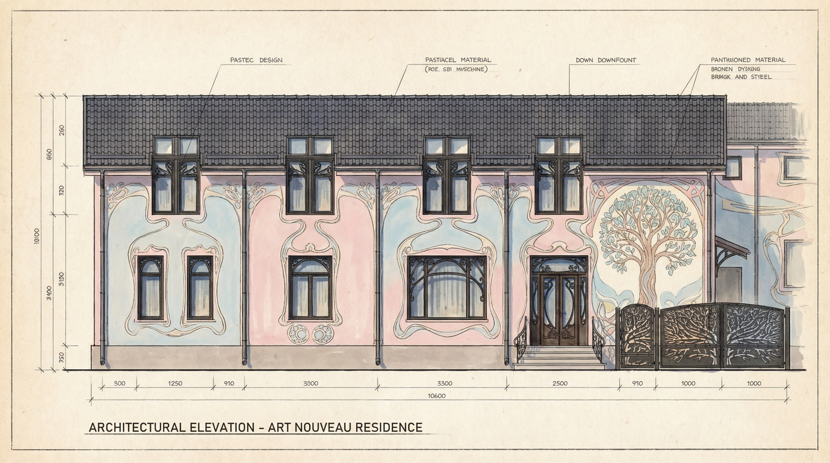 remove all anotations and dimensions transform in architectural freehand sketch