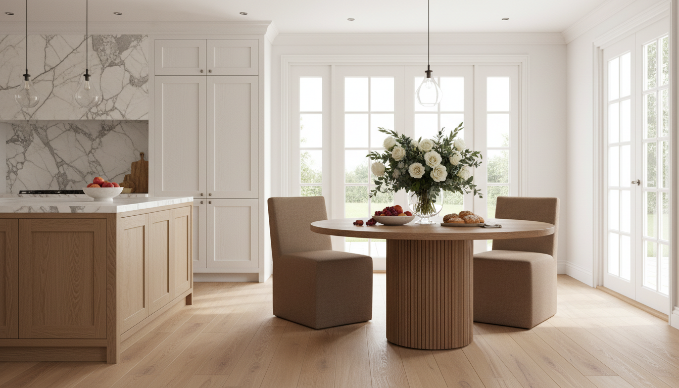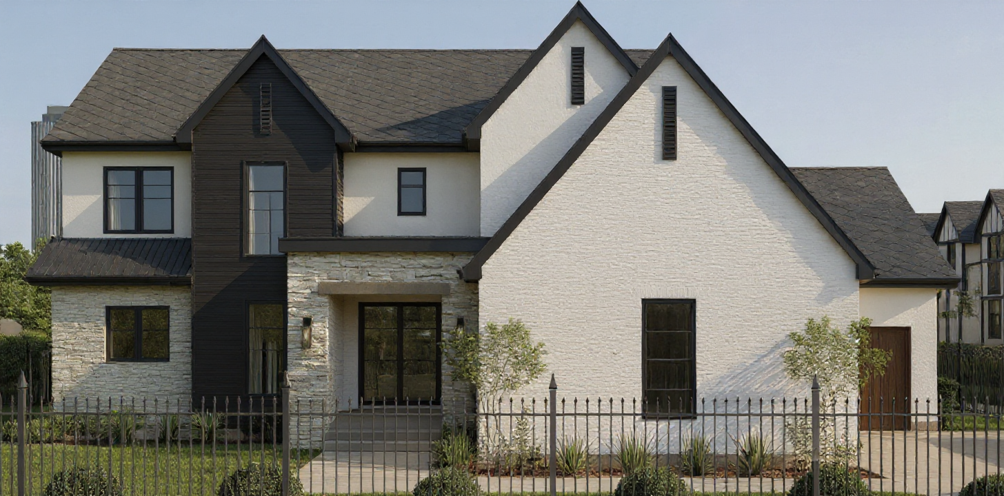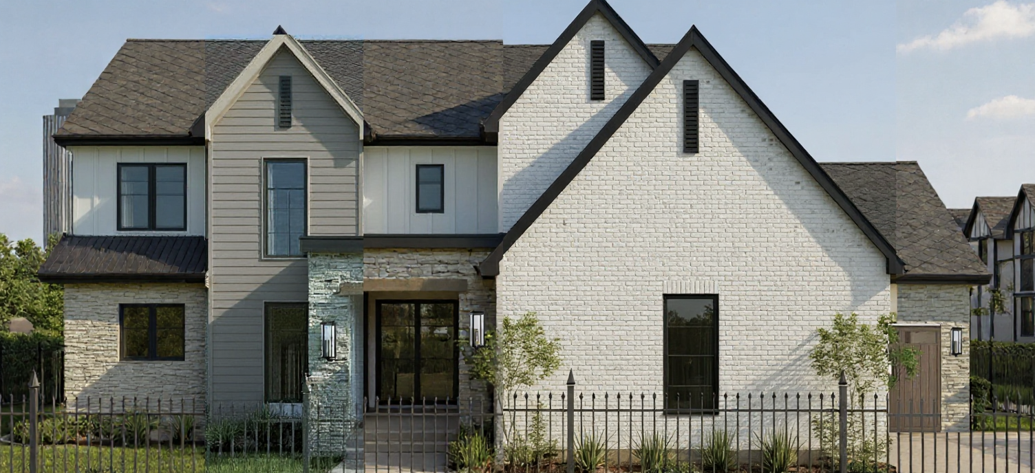 plaintext create a serene backyard scene with a modern minimalist aesthetic the foreground features a stylish rectangular pool with crystal clear blue water surrounding the pool are two elegant pool loungers with white cushions and dark brown frames alongside the loungers add a small round side table in a light wood tone on the right side include a chic outdoor seating area with a beige wicker table and comfortable chairs accented with soft pastel cushions add a large potted fern plant with lush green leaves beside the seating area the house facade in the background should be painted in a soft cream color with modern windows framed in dark gray add subtle architectural details to the cream facade for a contemporary look the walls surrounding the backyard are a warm terracotta contrasting with the sleek dark slate gray patio tiles illuminate the scene with soft natural daylight creating a tranquil and inviting atmosphere
