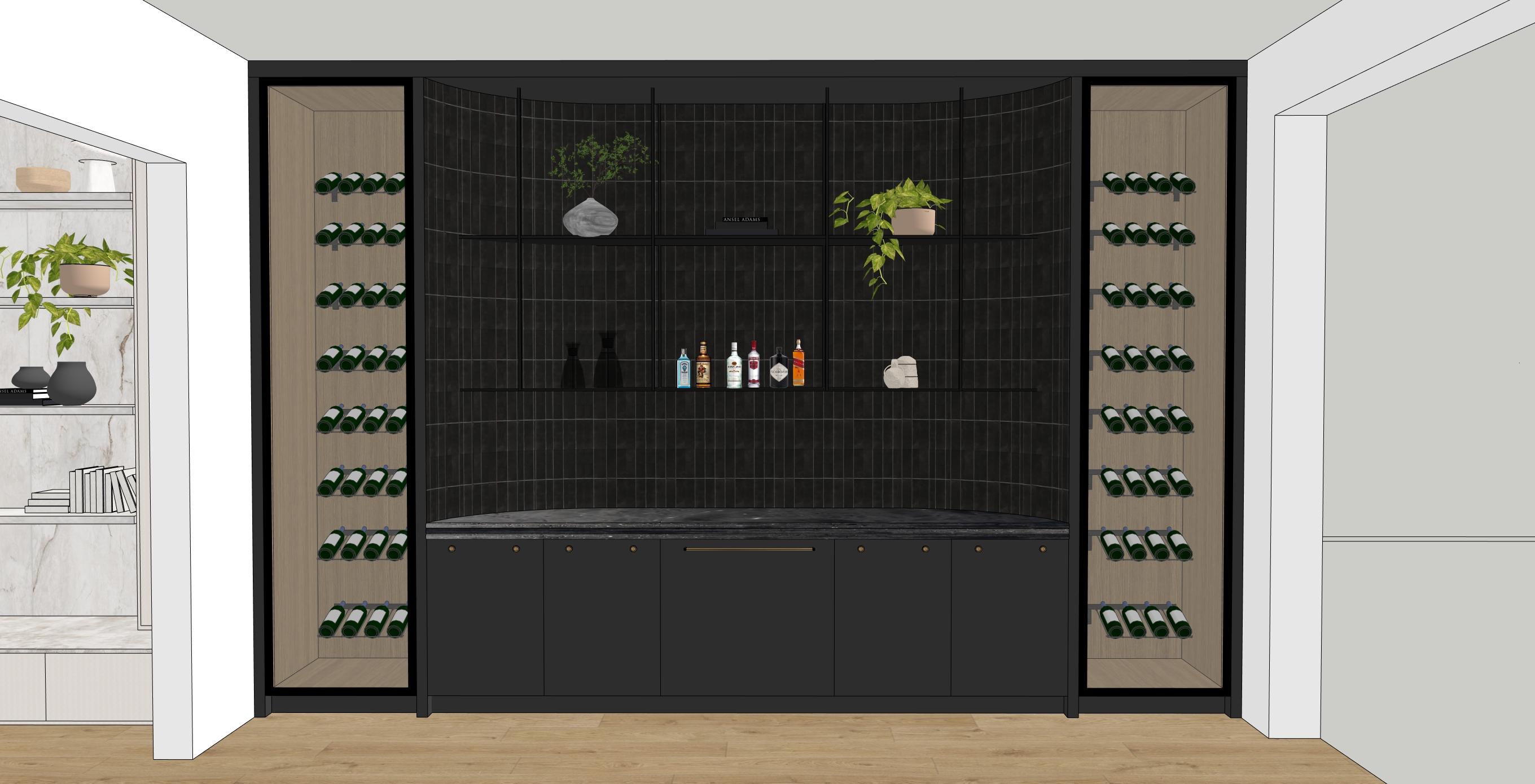 add led under shelves keep the lighting moody and warm keep all the colours as shown countertop is a triple bullnose edge