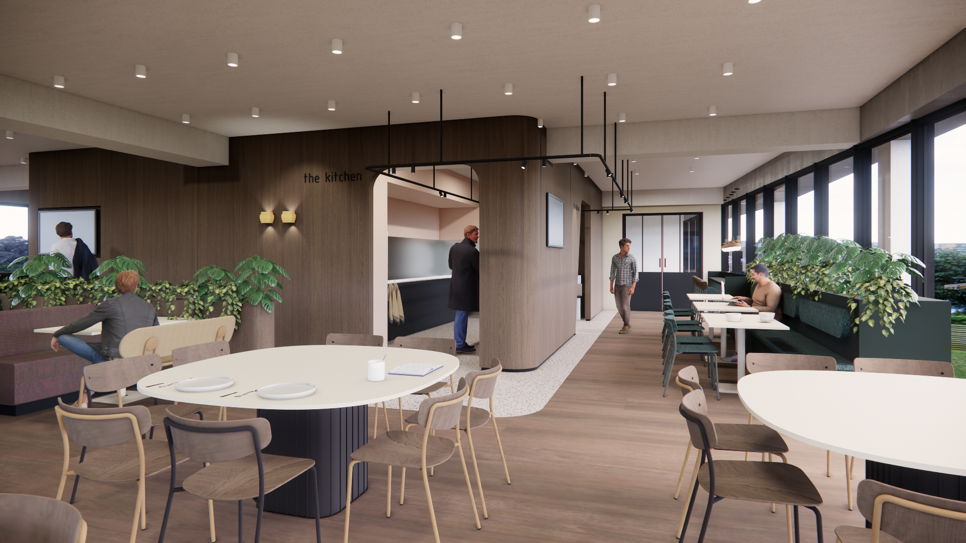 render a mordern cafetariah a luxurious atmosphere the ambiance is bright and welcomings casting soft reflections on the natural wooden floor color with walnut wooden chair