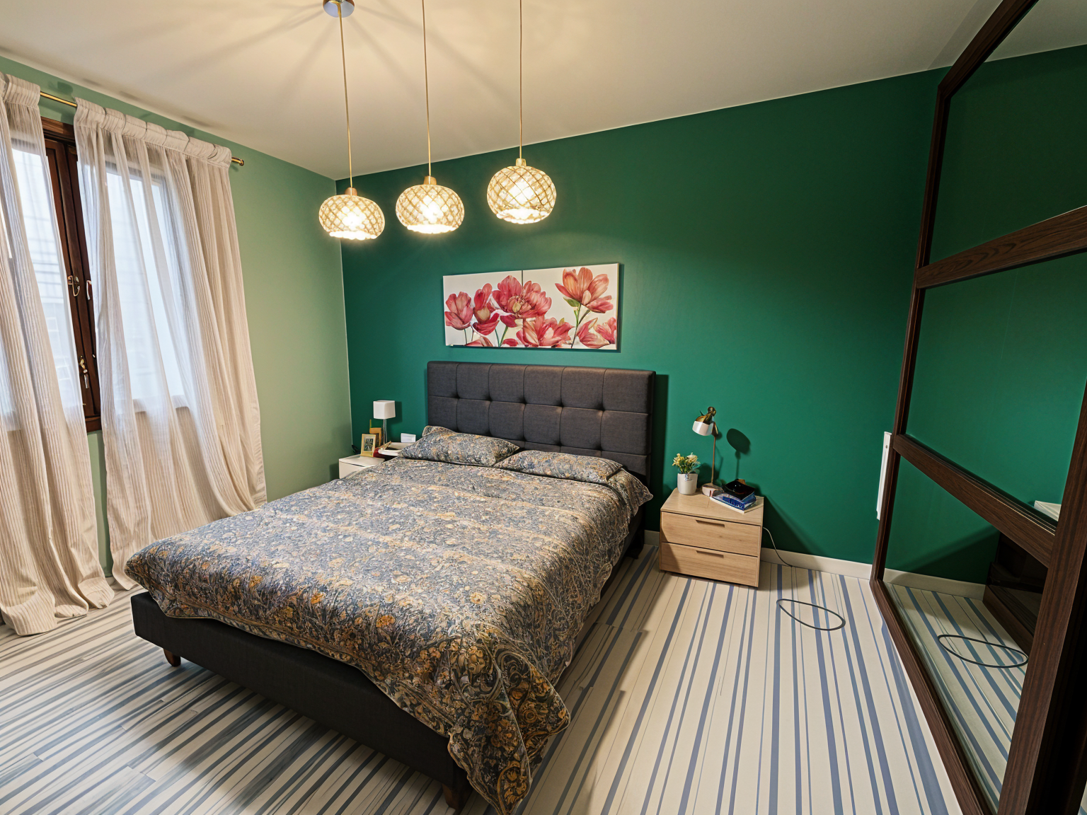 colora solo la parete dietro alla testata del letto letto di verde oliva