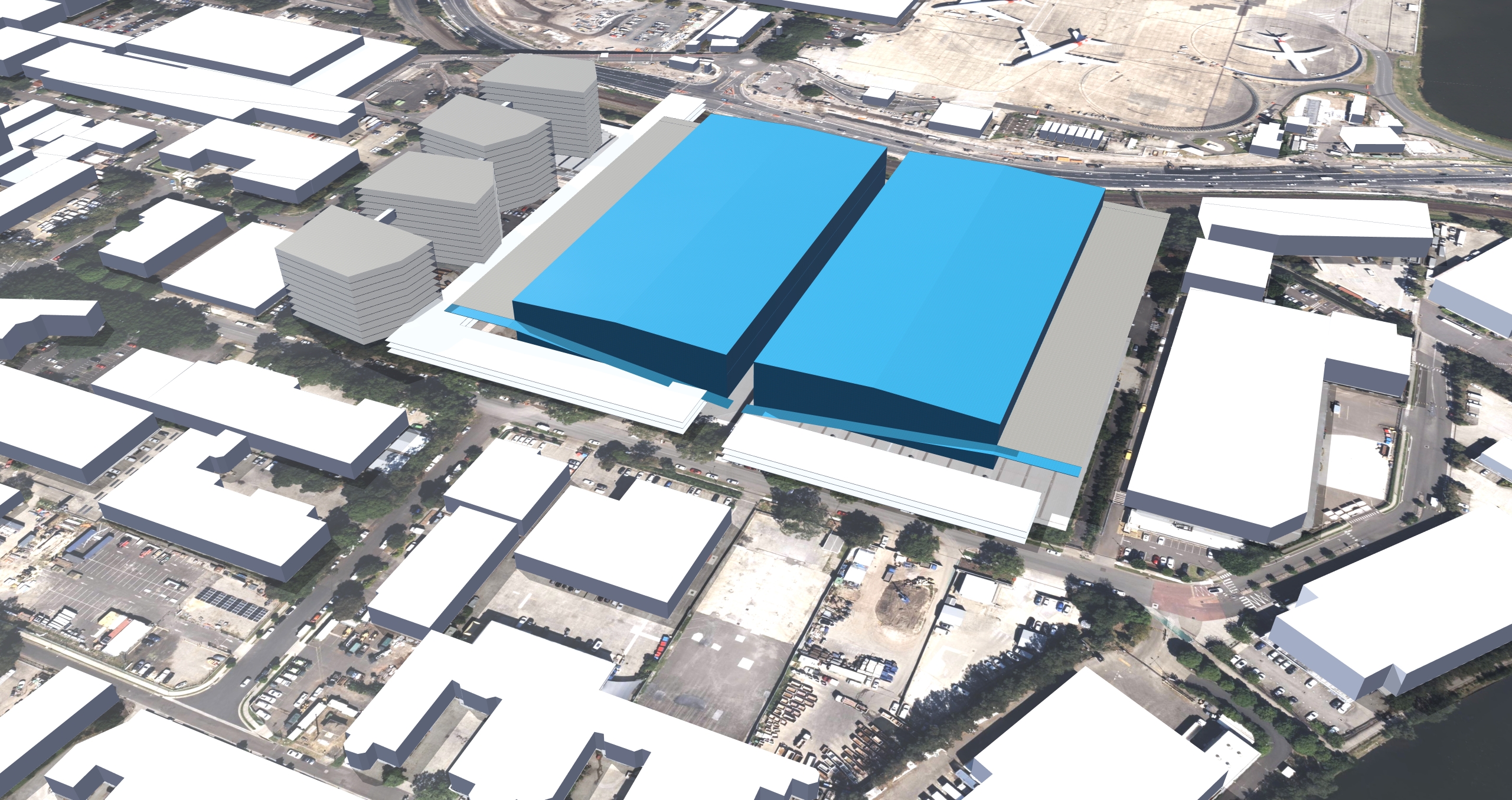 big bjarke ingels group aerial shot render a photorealistic 3d perspective of this futuristic warehouse in sydney reference the current material style just enhance them bronze standing seam metal roof verticle wood siding concrete walls keep model geometry the same windows doors roof walls garage door pavement driveway make a lush vegetation that looks native to truckee ca do not change the view only enhance the current materials and make the landscape nicer vegetation detailed textures in the wood siding and glass reflections and a vibrant clear sky with light atmospheric depth render in hyper realistic architectural visualization quality 8k resolution architecture