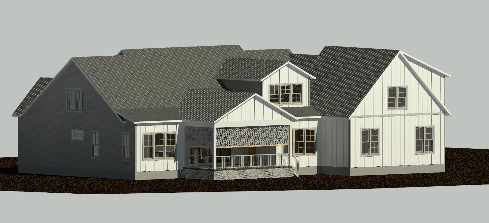 exterior shot a classic elegant house with a timeless appearance the siding is painted in clean crisp white complemented by a charcoal grey roof the windows are framed with white trims featuring delicate grey shutters the porch is inviting with white columns and subtle grey steps leading up to a simple wooden door no chimneys the background has a serene muted sky in soft shades of pale blue the overall atmosphere is peaceful and refined evoking a sense of warmth and timeless charm set in a rural heavy tree site architecture