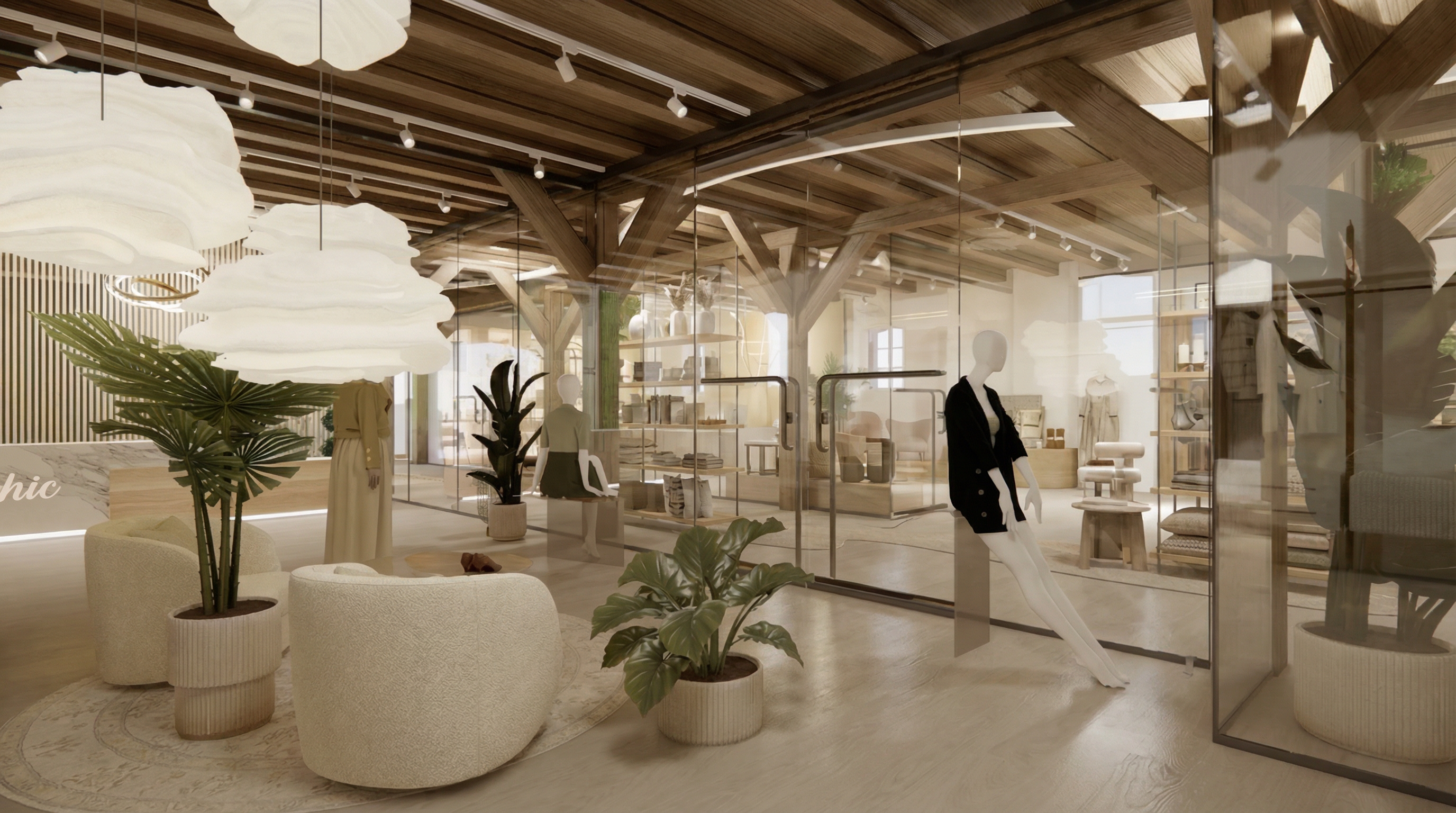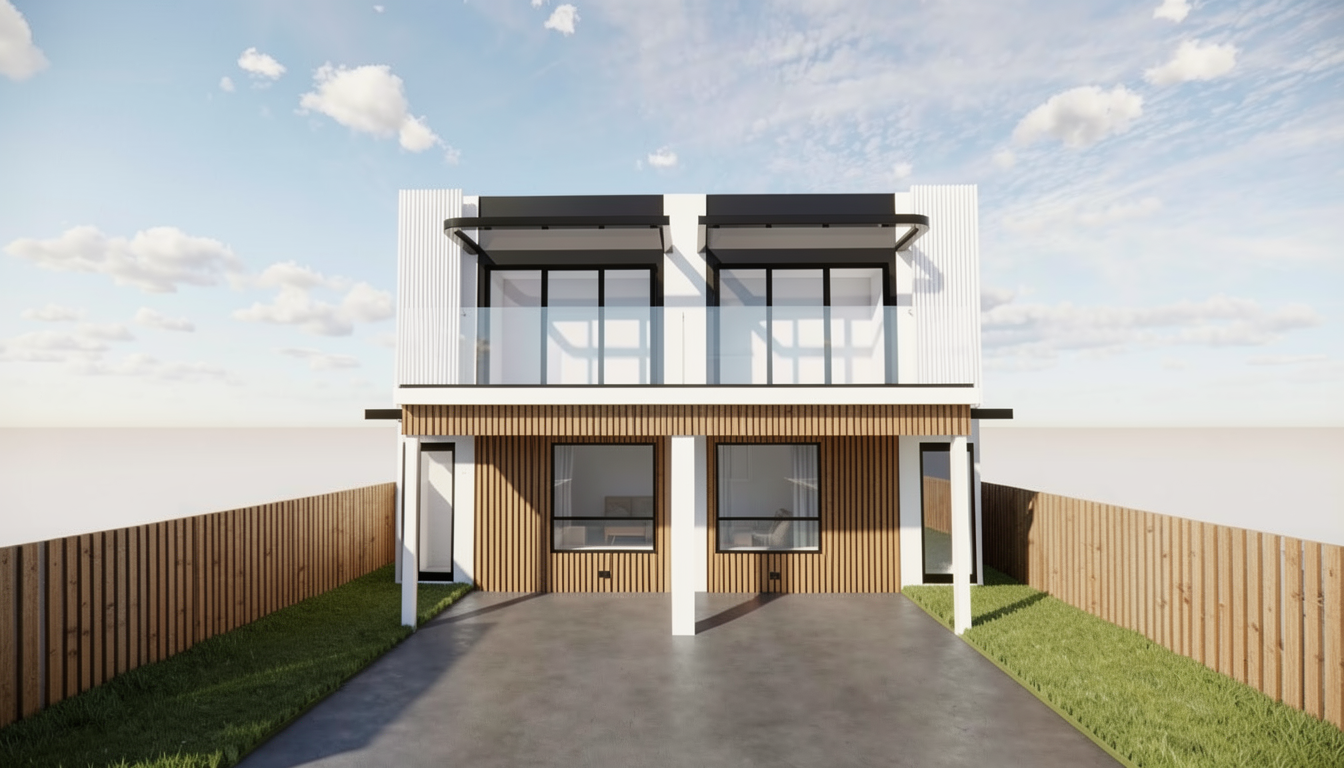 modify the existing building without adding any new floors do not increase building height keep the building at exactly three floors total recess the lowest of the three floors inward the ground level of the existing three storey volume is set back upper two floors remain in their current position facade line of the first floor moves inward only clear setback visible from street level strong horizontal shadow line created by the overhang above no additional base volume no extra storey no basement visible no plinth expansion keep facade materials and proportions darker tinted glass remains three interior floors remain clearly visible behind glass