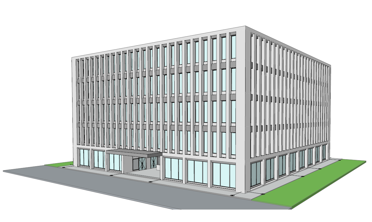 create a photorealistic architectural render of an office building based on the reference images provided this building should follow the exact mass proportions fa ade grid and window rhythm shown in the reference key objectives produce a realistic investor grade render suitable for presentations maintain all structural elements from the reference design elevate the scene with professional lighting materials and setting context building details number of floors 5 6 specify fa ade material palette vertical elements are in stucco off white in color horizontal elements are in a slightly greyer color but still resembling off white windows are transparent maintaining a greenish reflection window style e g floor to ceiling punch windows curtain wall grid architectural vibe modern minimalism setting is freestanding building in a lot with a road and sidewalk to get to the building and parking space next to it with tropical vegetation and landscaping as the building it set in cartagena colombia scene composition view angle eye level street view slight aerial corner perspective symmetrical frontal time of day bright midday add subtle environmental reflections on glass for realism optional add people silhouettes for scale not distracting quality requirements ultra realistic materials accurate reflections roughness shadows soft global illumination physically correct lighting crisp edges perfect geometry no distortions 4k output consistent with the reference images camera output style focal length 28mm depending on how wide you want it render style clean sharp neutral color grading deliver a single hero shot plus alternative angle variations if possible architecture