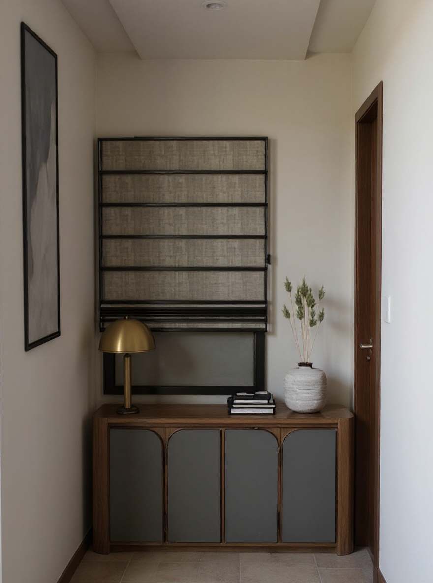 a modern ranch style structure with the following features 1 medium gray asphalt shingles 2 40 high river rock wainscot all along the front base of the house 3 the existing large window openings one located in the middle of the elevation and the two on the right hand side of the elevation are a pair of white single hung windows with divided light top and bottom windows 4 black shutters on the sides of each window 5 white vertical board batten siding from the top of the stone up to the roof overhang 6 the existing front door is aligned in the same plane as the front windows to the left the door panel is black and has a 9 section divided light window in the top half of the door 7 the glazing to the right side of the garage is a pair of 36 wide white arcadia patio doors with divided lights 8 the 40 high river rock wainscot wall will extend to the right from the garage paster the arcadia patio doors to enclose a new courtyard 9 courtyard wall extending 16 to the right side of the garage 10 the sectional garage doors will be black with a 3 long x 6 window on the right end of each panel 11 starting at the right front corner of the garage extend a river rock courtyard wall to the right past the patio doors 12 add divide light to the lower two windows on the right 13 there is only one existing chimney adjacent to the garage will have river rock that matches the house wainscot the rendering should be specific to my instructions only no alternate walls or details allowed river rock is equal to boulder creek natures blend river rock