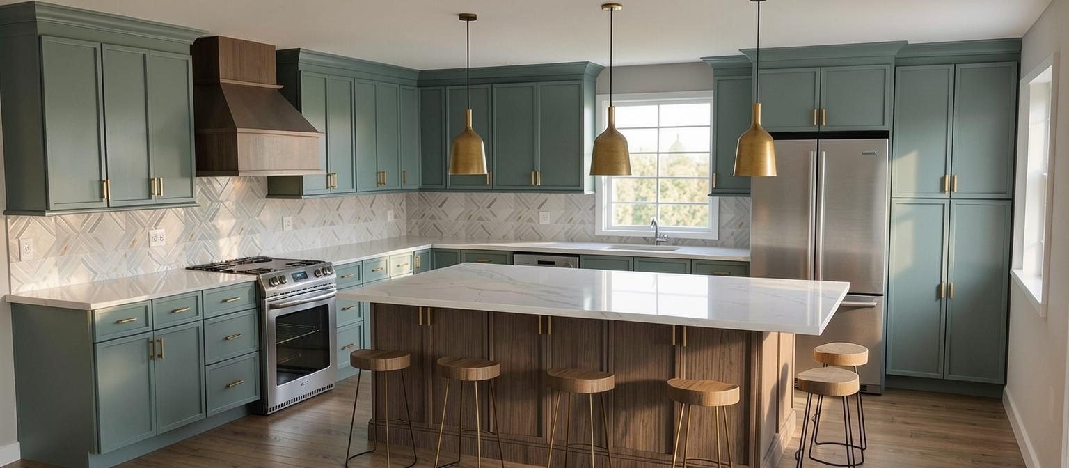 remove exterior make sink brushed brass make island and counters beige marble make walls painted light beige color make floor light wood remove exterior remove faucet from island