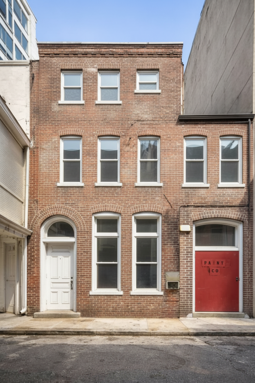 based on the attached image generate a new view of the building from a pedestrian perspective the camera should be positioned at street level and angled diagonally toward the building not a straight frontal view show the facade from an oblique perspective to create depth and realism maintain the original architecture proportions and design exactly as in the reference image ensure realistic lighting shadows and urban context