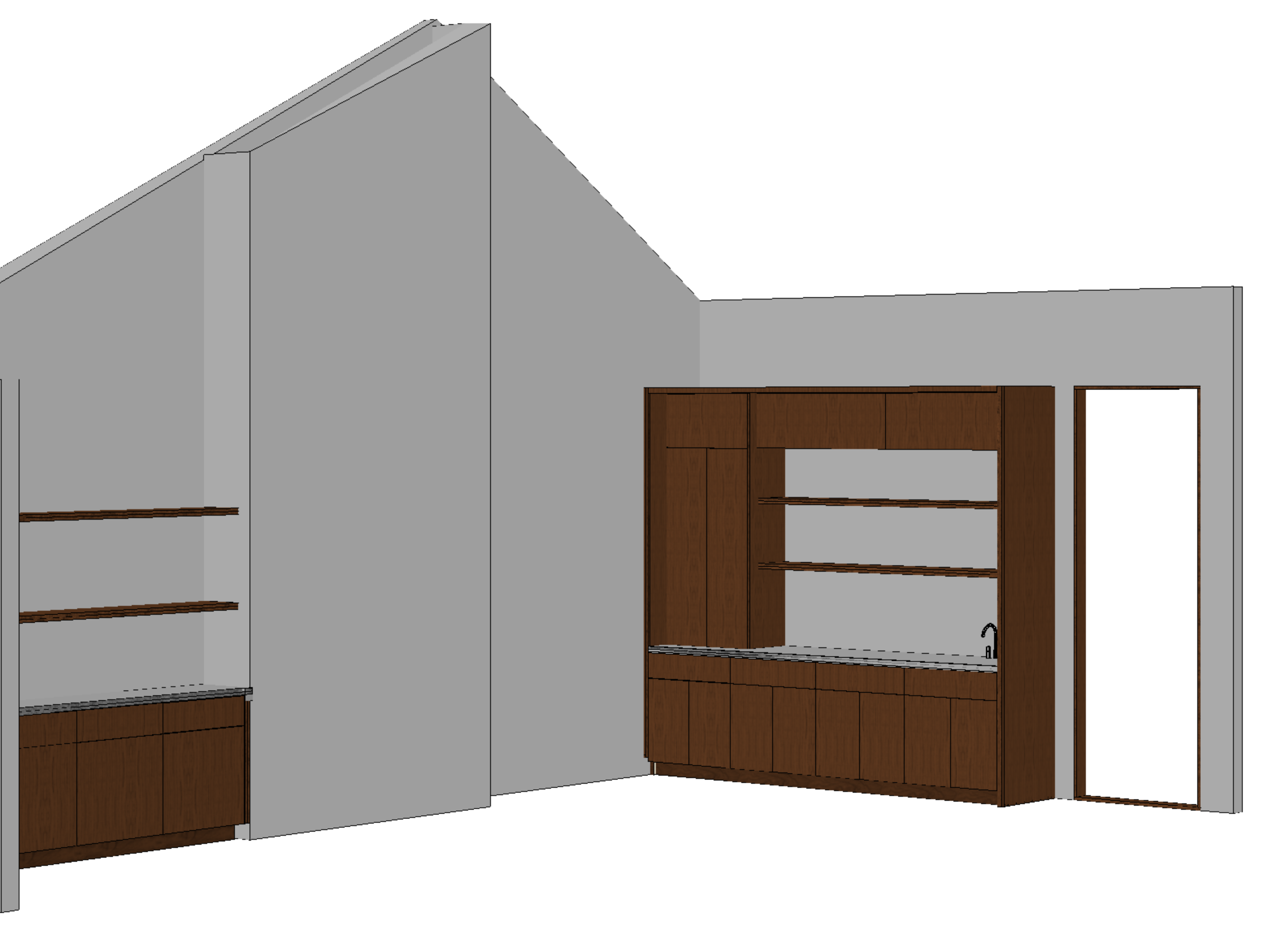interior shot walnut exterior wood cabinets slab cabinet doors white marble countertops