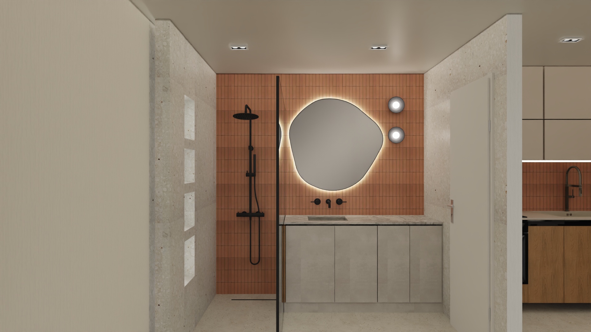 modernist exterior shot ultra photorealistic 3d interior image based strictly on the uploaded reference image maintain with absolute accuracy the exact same camera angle framing and perspective all architectural elements geometry proportions materials textures colors furniture d cor finishes and object placement artificial lighting fixtures and their design no additions or removals do not alter layout styling materials or design intent in any way enhance the scene only by introducing realistic natural residential mediterranean daylight entering through the existing windows soft diffused mediterranean light with a cozy atmosphere balanced daylight tones combined with warm interior ambience natural shadows realistic light gradients accurate reflections and true to life exposure photographic realism real life interior photography quality high detail physically accurate lighting no stylization no cgi look ultra photorealistic 3d interior image based strictly on the uploaded reference image maintain with absolute accuracy the exact same camera angle framing and perspective all architectural elements geometry proportions materials textures colors furniture d cor finishes and object placement artificial lighting fixtures and their design no additions or removals no material changes no color shifts no added objects no removed objects no layout changes no stylized lighting no dramatic sunlight no overexposure no cinematic effects no artificial glow architecture