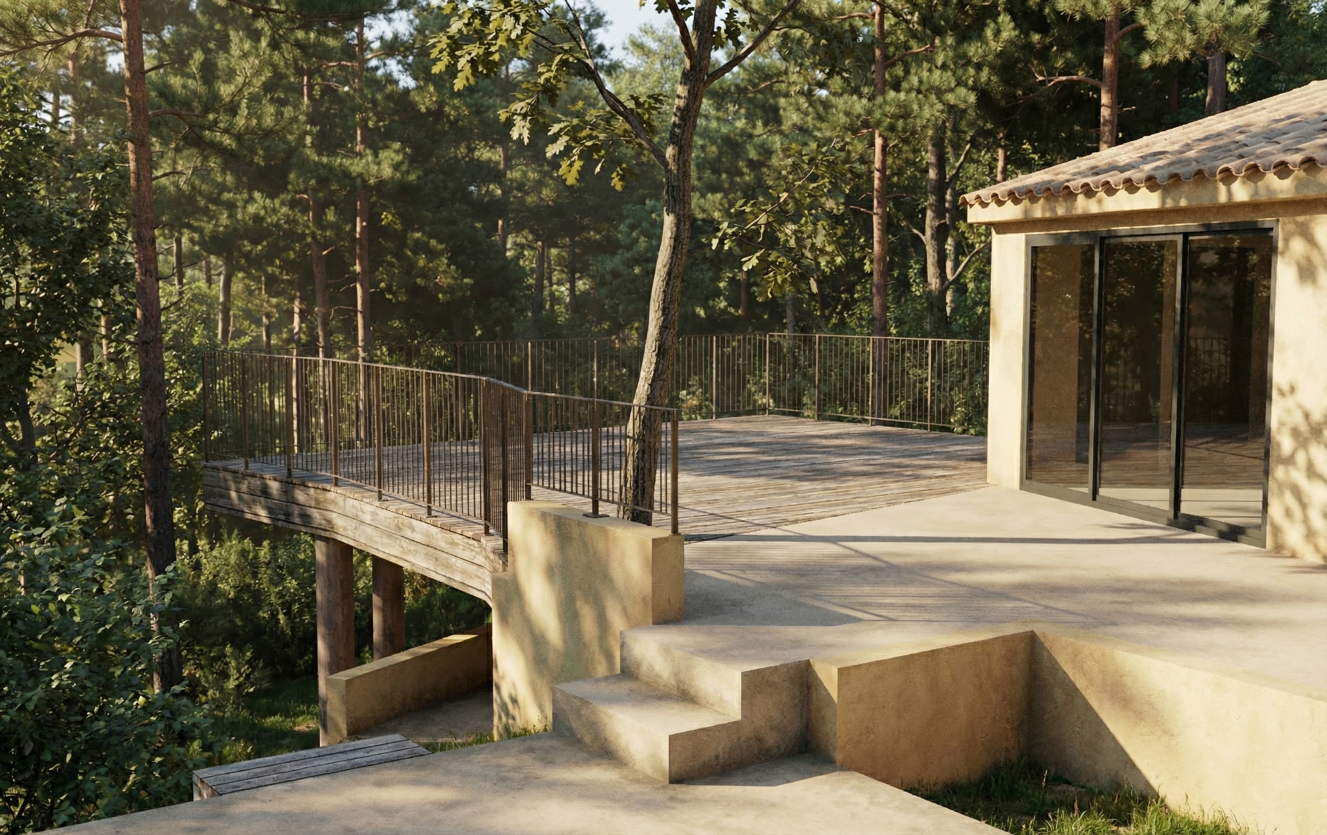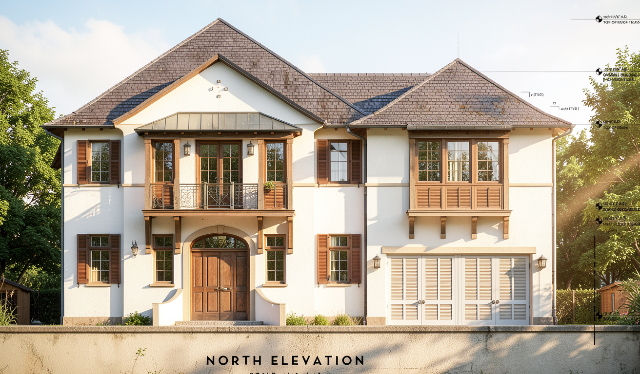 day blue sky with some clouds professional photography shot keep house layout structure and proportions please maintan the perspective image black metal roof glass opaque garage doors add neighborhood high end housescan y