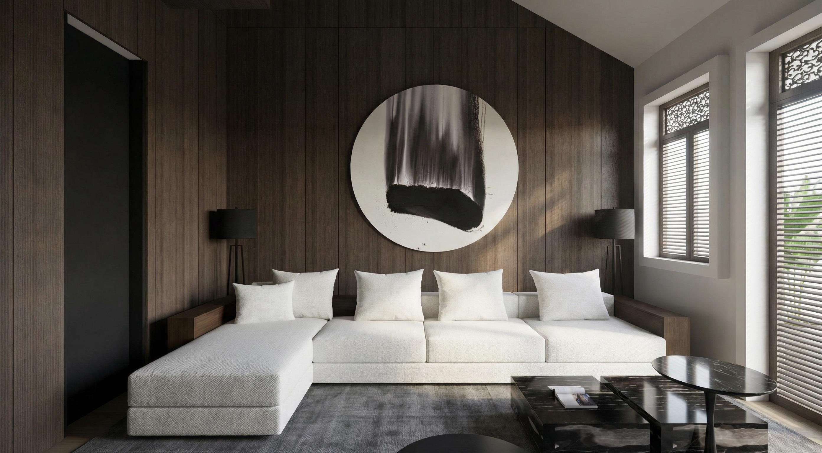 core instruction keep the entire image exactly the same do not modify composition lighting materials or objects window blind correction remove the blind from the door add a white linen blind only on the left window positioned inside the window frame covering approximately the upper 1 3 of the window height aligned with the window not floating semi transparent linen fabric soft minimal folds natural integration with the window door critical the door must remain completely clean and plain no fabric no blind no added elements restrictions do not change anything else do not modify lighting do not alter terracotta surfaces do not change styling