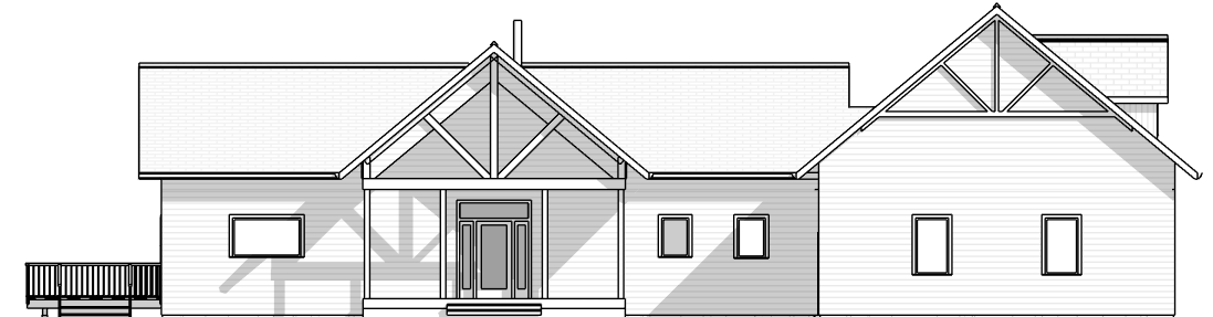 new build counry home featuring timber supports concrete front patio trim on windows and doors to be white show in rolling hills on countryside