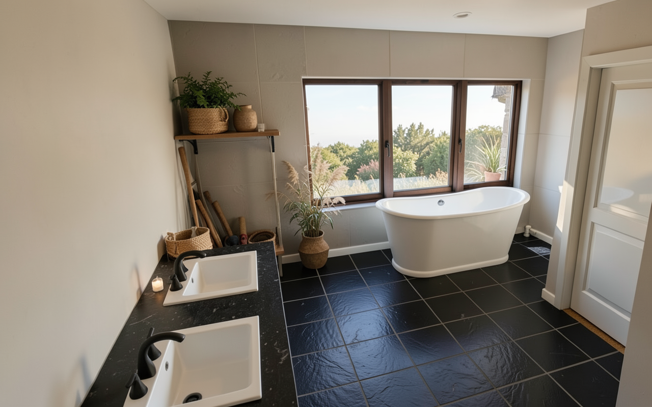 turn this picture to realistic rendering with modern japandi style the overall colour mood is soft muted natural and calming