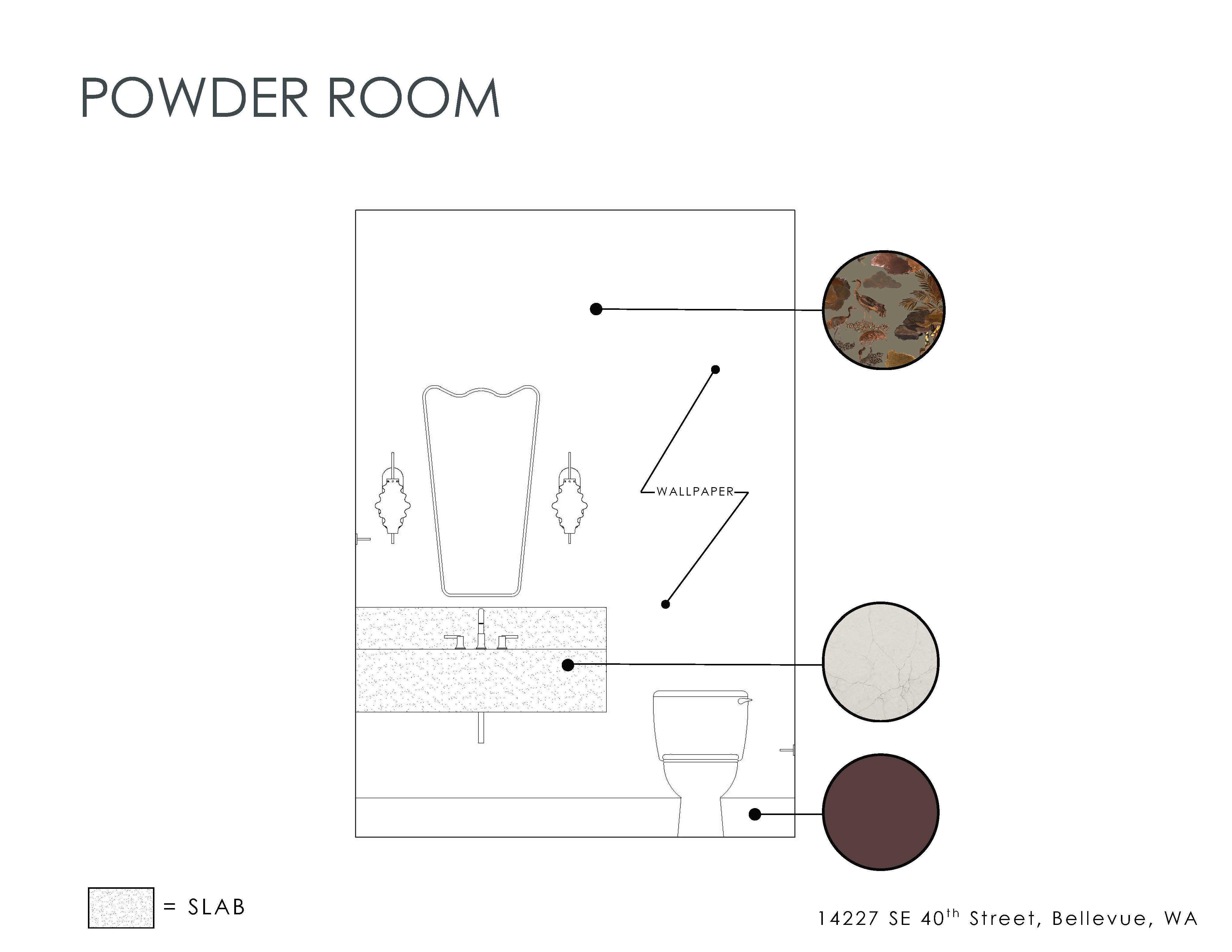 render the elevation based on the correlating material swatches make all four walls wallpaper and the floor hardwood
